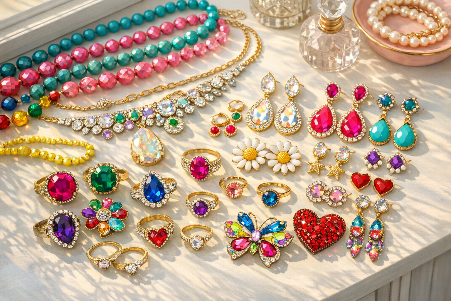 Les bijoux fantaisie sont identifiés par leurs formes et leurs couleurs distinctives.