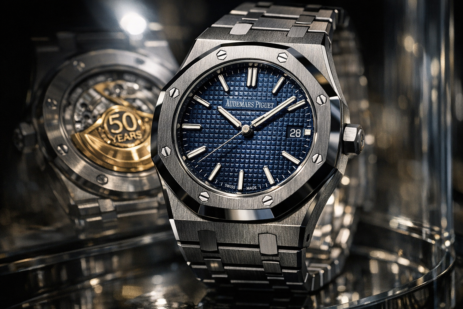 C'est aussi le premier épisode de Watches & Wonders à Genève, dont nous parlerons dans un autre article. En l'an 1950, les dirigeants d'Audemars Piguet ont lancé leur nouveau produit au design le plus innovant, créé un soir par le génie Gerald Genta deux ans plus tôt.