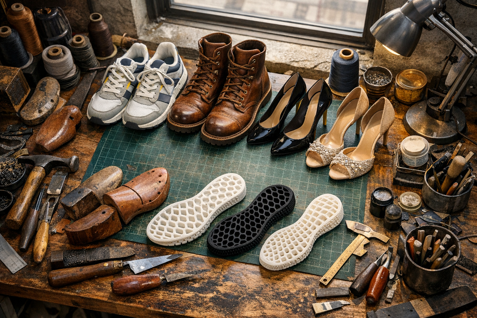 | Cordonnerie classique | Cordonnerie à la machine | Cordonnerie industrielle | Cordonnerie personnalisée |