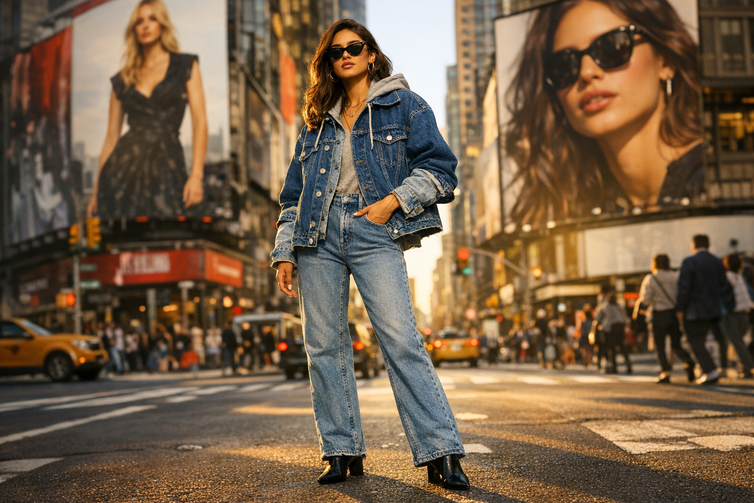 L’une des grandes beautés du denim est sa capacité à se mélanger avec presque tout dans votre garde-robe. Associez différents tons de bleu ou jouez sur les contrastes entre pièces claires et foncées. N’hésitez pas non plus à superposer plusieurs couches : une veste en jean sur un pull léger donne instantanément du volume et du caractère à votre look.Alors voilà, maintenant que vous êtes armé(e) de ces conseils mode, il ne reste plus qu’à expérimenter avec votre propre style!Passons maintenant aux questions que vous vous posez probablement sur les looks en denim de célébrités.