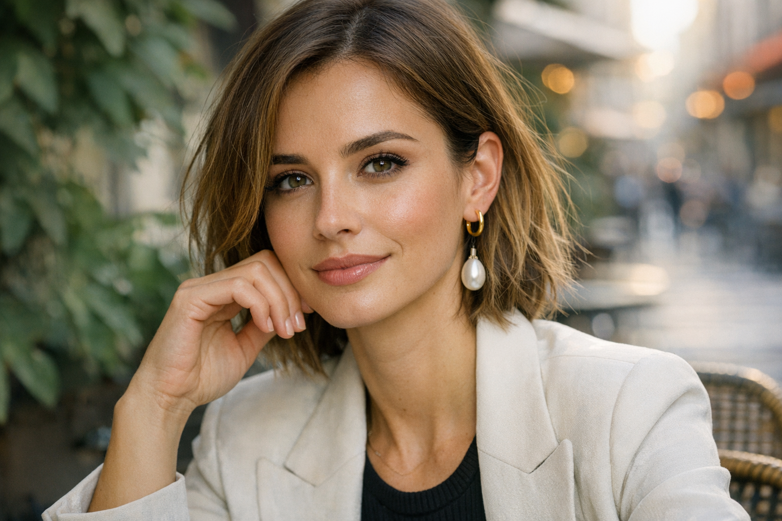 Cheveux attachés ou carrés courts ? Tout est visible. C’est le terrain idéal pour des boucles d’oreilles asymétriques tendance, à condition de rester lisible. Deux pièces trop proches en volume peuvent se concurrencer.