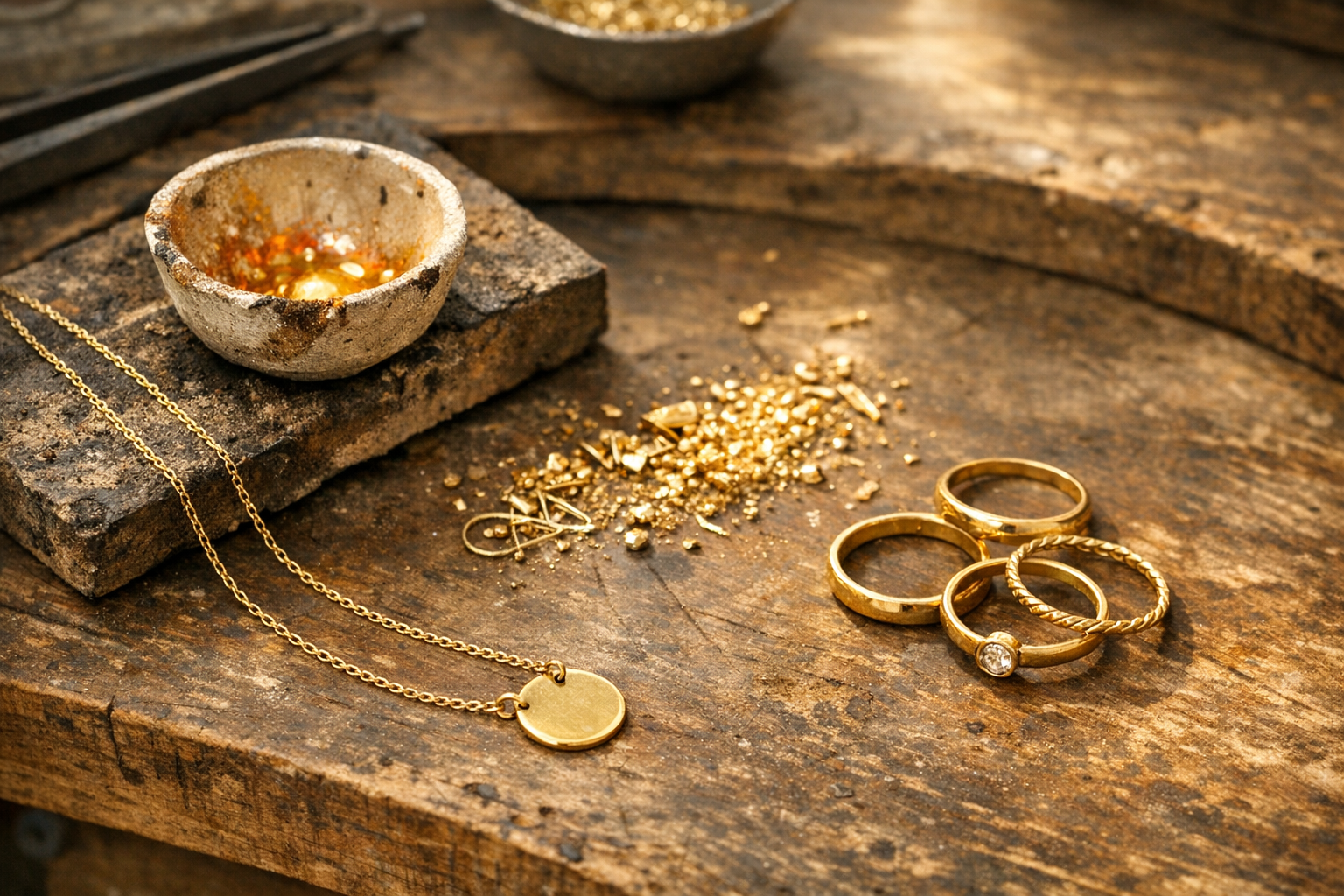 Par le passé, les objets en or ont longtemps été fondus pour créer des bijoux, entre autres.